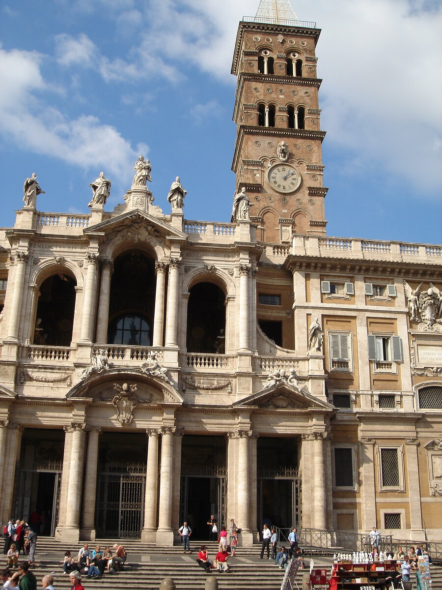«Маджоре» означает большой. В Риме около восьмидесяти церквей, посвященных Божией Матери, этот Собор самый большой и самый значимый. Он был построен в 352 г. римским вельможей Иоанном. Ему во сне было явление Божией Матери, которая повелела соорудить храм Ее имени на том месте, где утром выпадет снег, в ту же самую ночь такое же видение было и