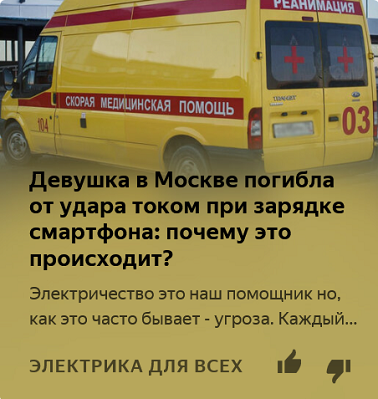 Заключение. Статья «Девушка в Москве погибла от удара током при зарядке смартфона: почему это происходит?» представляет собой дезинформацию для читателей. Её подготовило лицо, которое не знает требований к устройству электроустановок зданий, к применению в них защитных устройств. Причём на канале Электрика для всех опубликовано много статей, дезинформирующих читателей в этих вопросах.