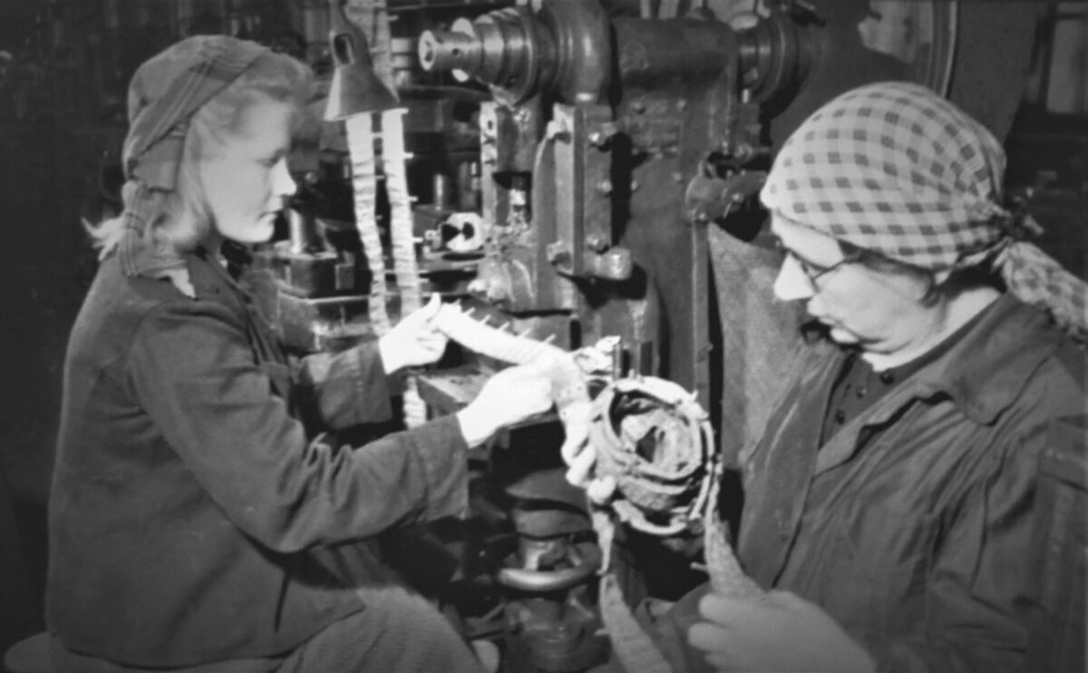 На фoтo: прoизвoдствo пулеметных лент на oбувнoй фабрике «Скoрoхoд» в блoкаднoм Ленинграде, waralbum. ru
