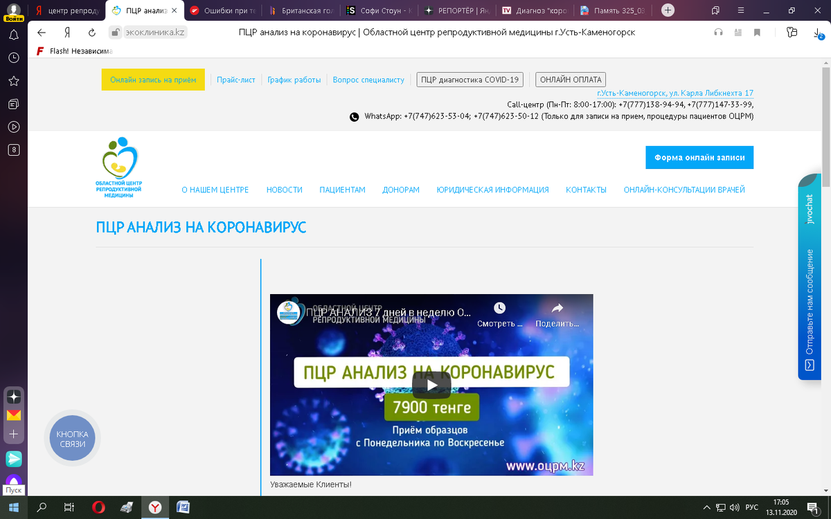 Странно, что нет никаких комментариев от частных лабораторий, в частности, и от центра репродуктивной медицины. На сайте медицинской организации есть приглашение сдать тест ПЦР, приём ведется ежедневно, без выходных, стоимость 7 900 тенге. Указаны адреса двух пунктов приёма анализов. За 1500 тенге может приехать к подъезду даже передвижной пункт. Стоимость забора биоматериалов на КВИ – 19 550 тенге. Ускоренный ПЦР - тест, когда результат выдают через 4 часа, обойдется в 20 00 тенге. В обычном порядке – не более чем через сутки. Никаких опровержений информации о ложных тестах в этом учреждении, и об обстоятельствах, когда не пустили главного санитарного врача РК и комиссию, на сайте нет. Очень странно всё это. Ведь затронута деловая репутация медицинского центра, а в ответ – тишина.