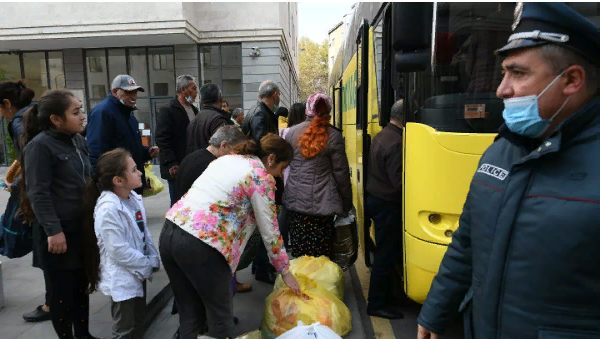 В Нагорный Карабах возвращаются беженцы люди которым пришлось оставить свои дома после начала боевых действий, вторая колонна автобусов в сопровождении российских миротворцев и военной полиции прибыл из Еревана в Степанакерт 475 человек вернулись домой, безопасность мирных жителей обеспечивают патрули Российского контингента. По инициативе России всю необходимую помощь населению предоставит