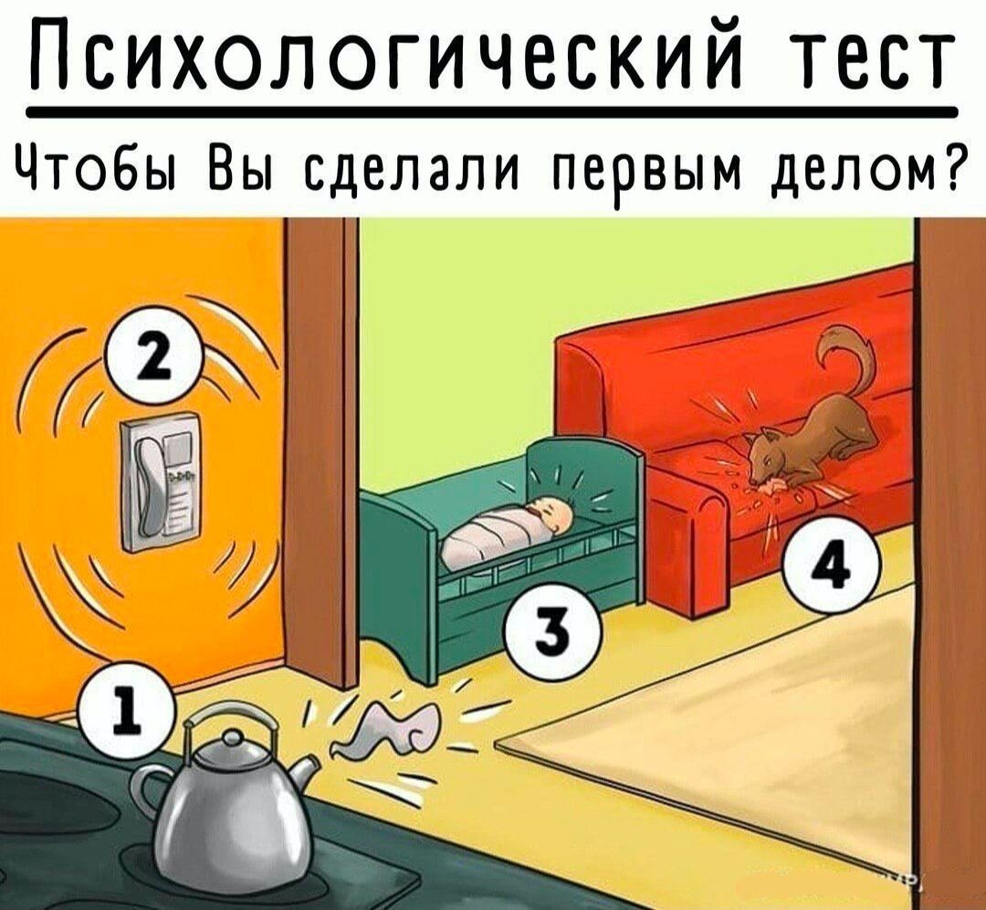 В данном тесте вам нужно выбрать 1 из 4 вариантов того, что бы вы сделали в первую очередь, начинаем!