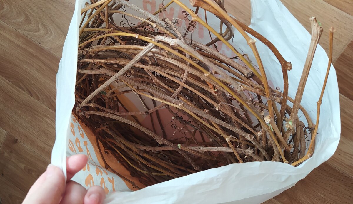 Ко мне приехал пакет с дачи с оборванными длинными ветками дикой виноградной лозы, которая обвивает все заборы в округе. Бери - не хочу)