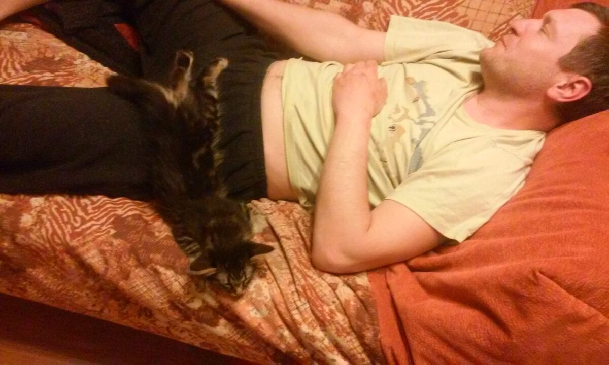 Мой муж - отъявленный кошатник. Правда, как и почти все мужчины, он кошек любит, а вот весь уход - на мне.