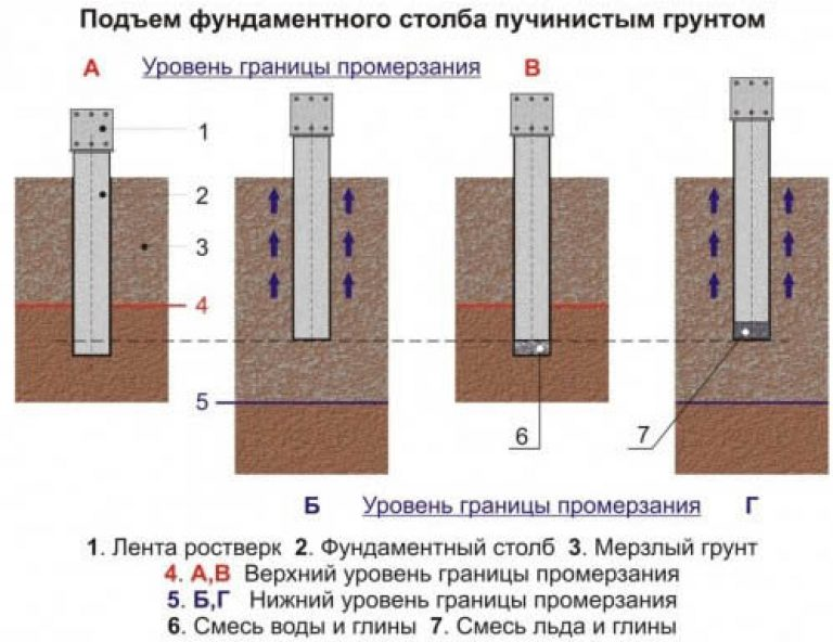 1. Использования сильно заглубленного фундамента, на глубину ниже уровня промерзания грунта. В Московской области усредненный норматив глубины промерзания грунта составляет 140 см, хотя он может быть и ниже, на севере области (об этом нужно знать и принять поправку на эту глубину). Таким образом, глубина залегания фундамента должна составлять не менее 1,5 метра. При закладке фундамента ниже уровня промерзания на него не будет действовать выталкивающая сила. Способ надежный, но дорогостоящий.