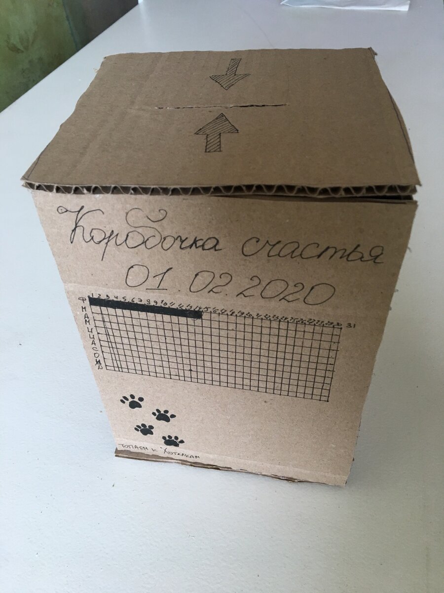 Это картонная коробка с прорезью, полностью заклеенная по периметру. Я ее специально делала сама: это повышает важность предмета. Со временем декорирую как-нибудь, чтобы не было голого картона. Пока идей как именно не появилось.