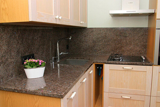 Labrador Antique – камень красивого шоколадного оттенка с россыпью голубых переливающихся кристаллов.