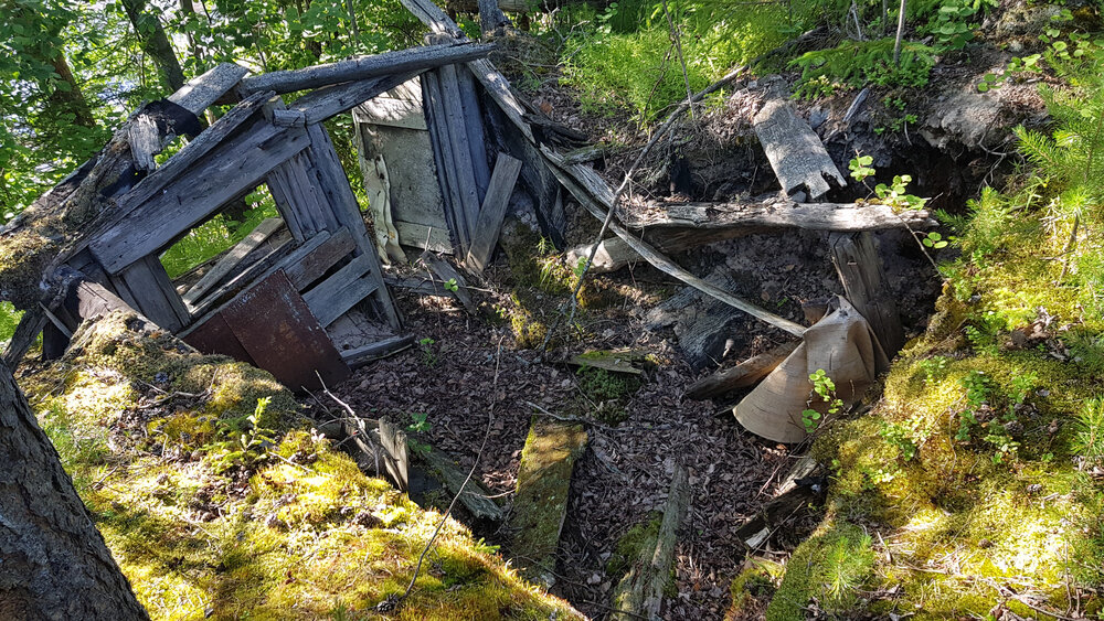 Пока шли по берегу от мыса Гажий нос, наткнулись вот на такую землянку.