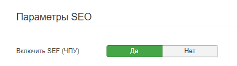Чтобы включить ЧПУ, нужно зайти в Система -> Общие настройки и в разделе СЕО включить SEF