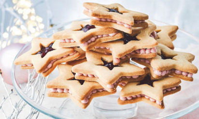 3. Разверните и раскатайте другой кусок теста. Выбейте еще 15 звездочек и перенесите на вторую выпечку лист. Штампуйте отверстия от середины 15 бисквитов с помощью 3-сантиметрового резака. Накройте крышкой и охладите в течение 15 минут. Нагрейте духовку до 180С/160С Вентилятор/Газ 4. Выпекать 10-15 минут (звездочки с дырочкой нужно меньше времени), оставить остывать на несколько минут, затем переложите на проволочную решетку, чтобы полностью остыть.