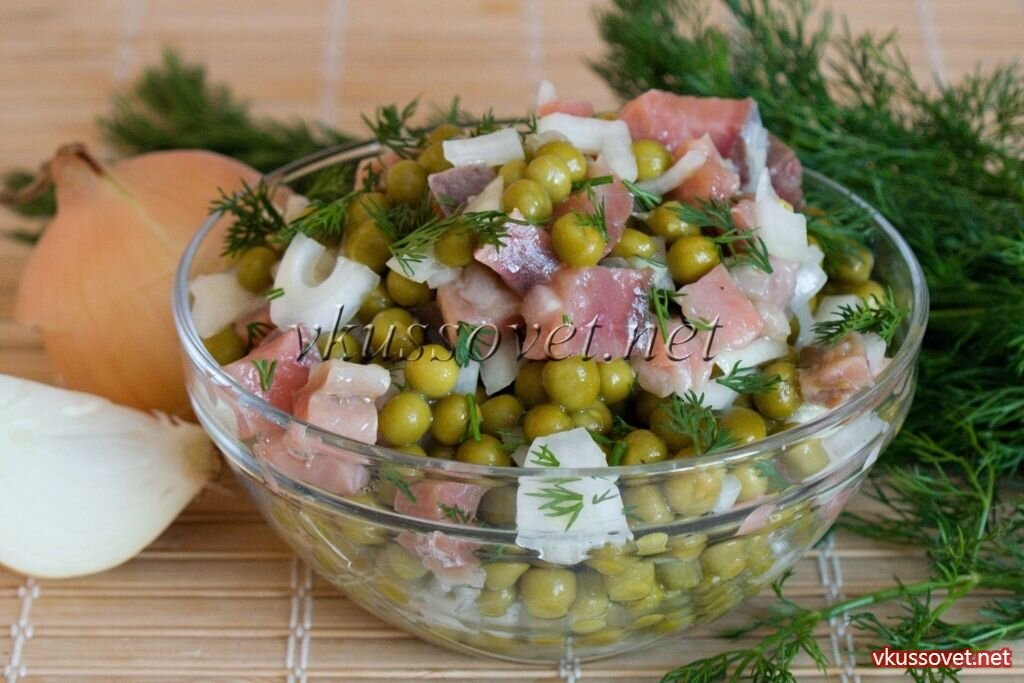 Рецепт приготовления салат с соленой горбушей, горошком и луком. Несмотря на такой простой состав ингредиентов этот салат получается на редкость вкусным, интересным и легким. Он идеально смотрится на торжественном столе и вполне подходит для семейной трапезы. Если признаться, то в нашей семье он съедается буквально за пару минут. Его действительно сколько не сделаешь, все мало.