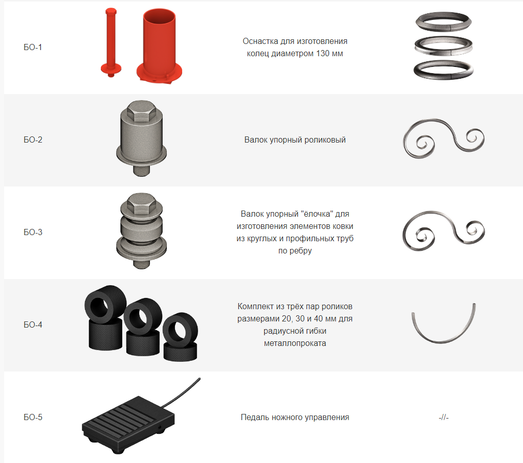 Также при приобретении кузнечных станков серии «ПРОФИ» в базовой комплектации наша компания предоставляет следующие блоки декоративного сдавливания на выбор: