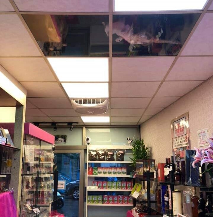 В одном из магазинов Японии, хозяин заменил несколько потолочных плиток на прозрачные, чтобы его кошки, которые там постоянно отдыхают - могли следить за тем, что творится внизу.