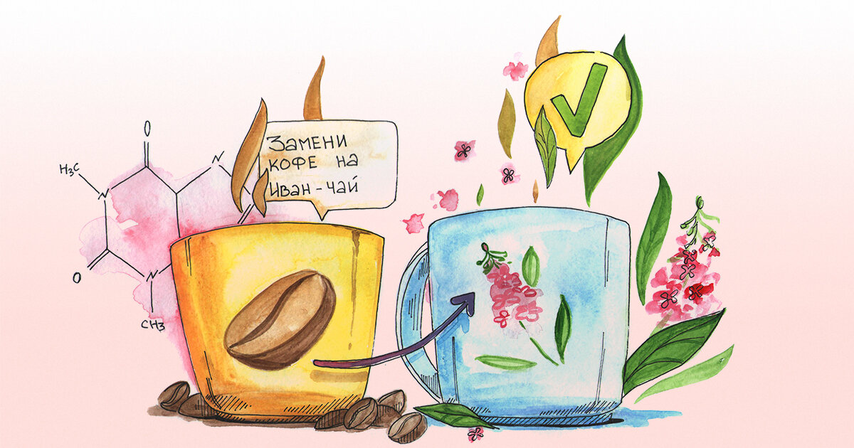 О кофе ведется много споров: одни говорят, что от него больше вреда, чем пользы, другие не способны ни дня прожить без чашечки бодрящего напитка. На самом деле вопрос в количестве: одна чашечка с утра не навредит, а вот регулярное потребление в течение дня воздействует на нервную систему и вызывает зависимость. Так чем можно заменить кофе? Один из достойных кандидатов — чай из кипрея. Почему этот чай является заменой кофе? Есть ли кофеин в иван-чае? Сайт-источник - https://uraltea.ru/blog/ivan-chaj-kofejnaya-bodrost-bez-kofeina Как работает кофеин В течение дня в нашем мозге вырабатывается молекула аденозин, которая говорит телу об усталости, обращает внимание на то, что надо отдохнуть и набраться сил. Любой нейротрансмиттер работает не тогда, когда выделяется, но когда присоединяется к своему рецептору. К каждому рецептору может подойти только определенная молекула с определенной структурой и физическими свойствами. Молекула кофеина похожа на молекулу аденозина, поэтому, когда мы пье