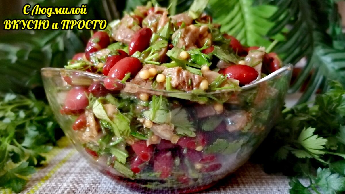 Привет, друзья. Сегодня хочу предложить вам ПП рецепт, казалось бы, простого салата с фасолью, отварной говядиной, и кучей зелени. Но интересная заливка так волшебно изменяет вкус салата, что он делается необычайно вкусный. Салатик получается сытный, но лёгкий, все продукты в нем полезные и необходимые для нашего организма, а ещё они простые и доступные. Поэтому такой салат можно делать хоть на каждый день (готовить его 10 минут), хоть на праздничный стол, потому что, ну, ооочень вкусно и полезно!