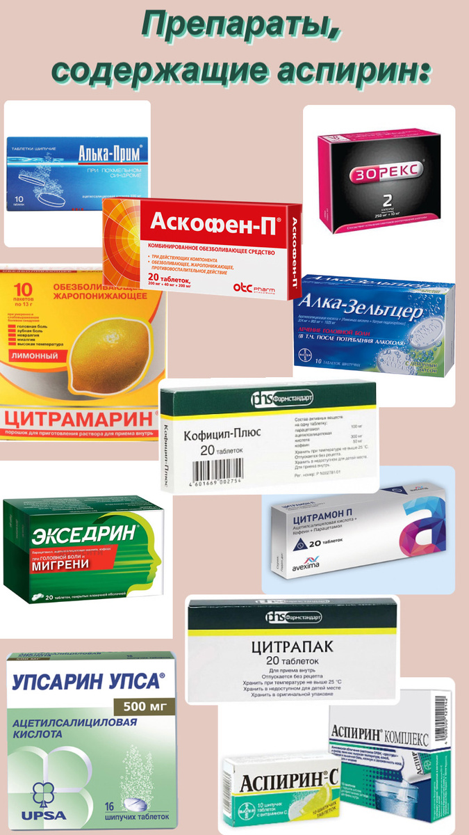 💊Препараты содержащие ацетилсалициловую кислоту (аспирин):