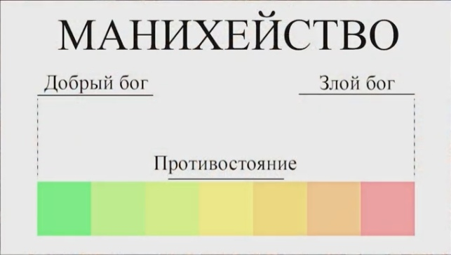 Если коротко, то манихее верили в существование злого и доброго богов, которые находятся в постоянной борьбе. Я постарался отразить манихейскую