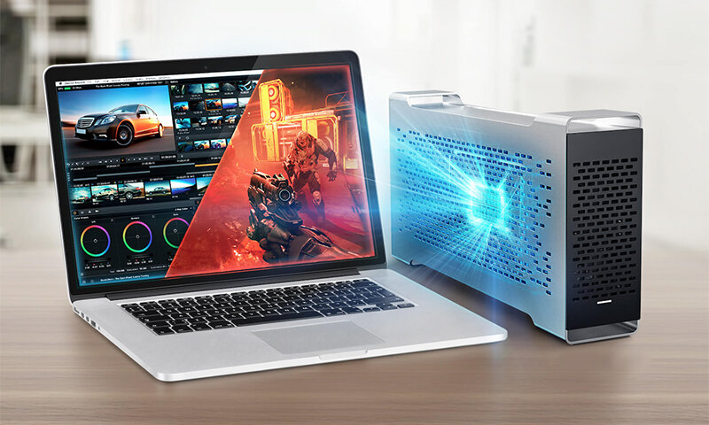 Это внешняя графическая док-станция с интерфейсом Thunderbolt 3, которая обладает повышенной графической производительностью для мобильного устройства, возможностью получения большей скоростью в играх. Устройство совместимо с видеокартами на базе новейших графических процессоров GeForce и Radeon.