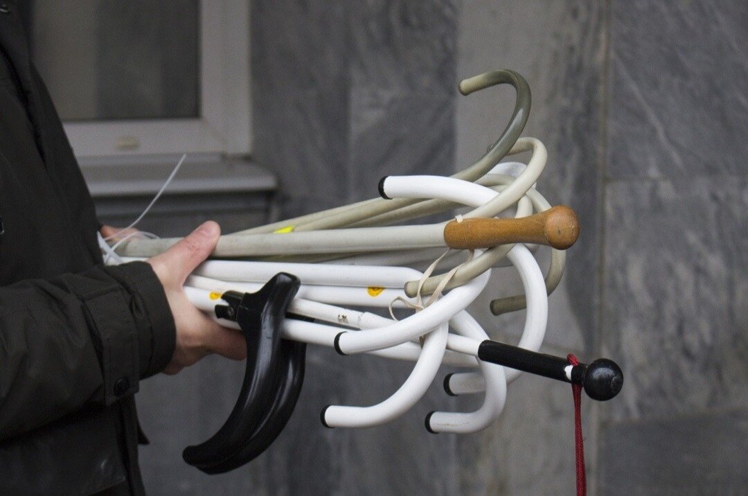 Перед уходом дети получили от товароведа магазина небольшие сладкие подарки. Воспитатели скомандовали: "Разбираем трости".
