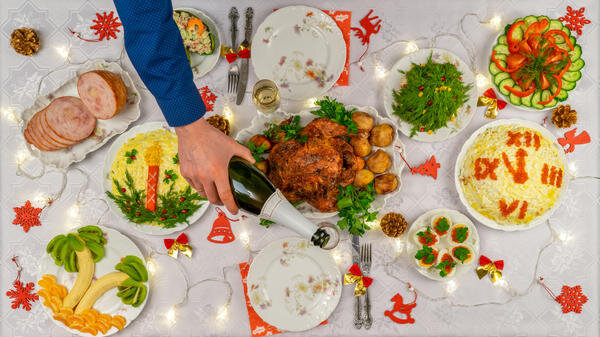 Можно заранее нарезать полосками болгарский перец, разобрать на соцветия капусту брокколи, натереть морковку, измельчить зелень и т. д. В день приготовления праздничного стола вам останется только достать ингредиенты и бросить их в кастрюлю. Особенно удобно использовать замороженные грибы. Перед заморозкой их нужно отварить или обжарить. Использование готовых продуктов сэкономит практически половину дня.
