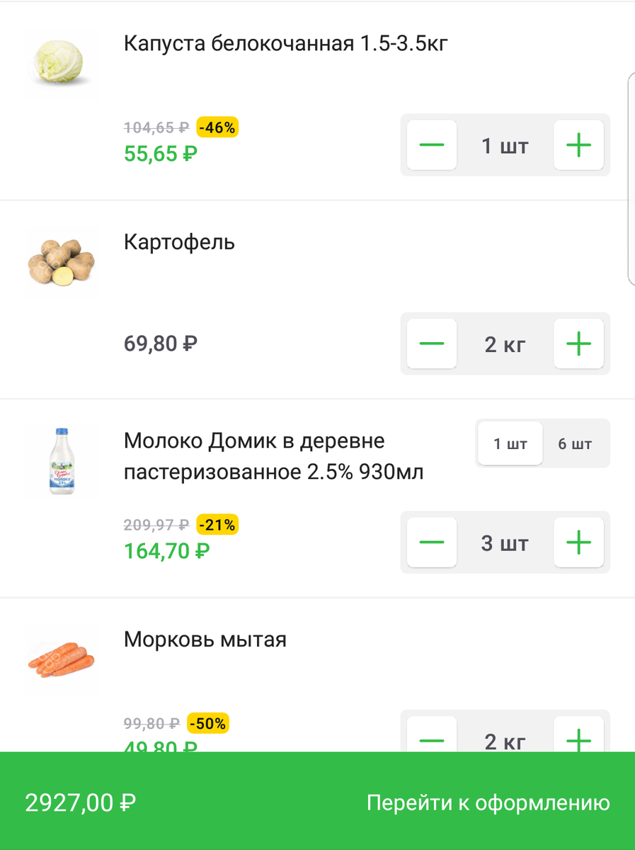 Вооружившись приложением Впрок от #перекрестка я положила в корзину всё, что мне надо было для приготовления еды для всей семьи.