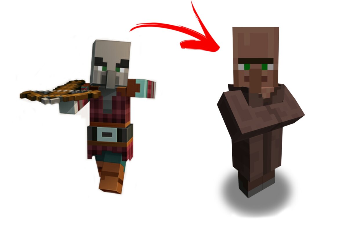 Как превратить разбойника в мирного моба в Minecraft?