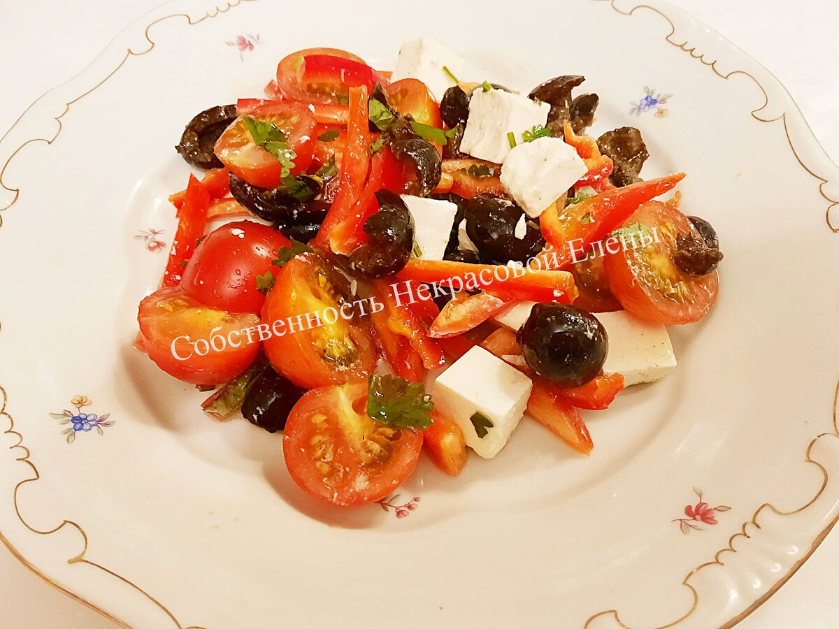 1. Изначально помидоры сюда идут крупные, сезонные, но сейчас уже вкуснее черри. В качестве зелени великолепно подойдет базилик свежий, но и с кинзой вариант вполне себе. Рекомендую попробовать оба варианта.
