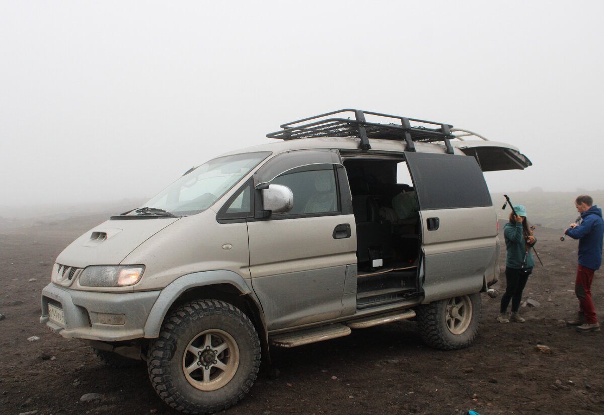 Мы добирались на японском минивэне Mitsubishi Delica, на который поставили более проходимые, чем в оригинале, колеса.