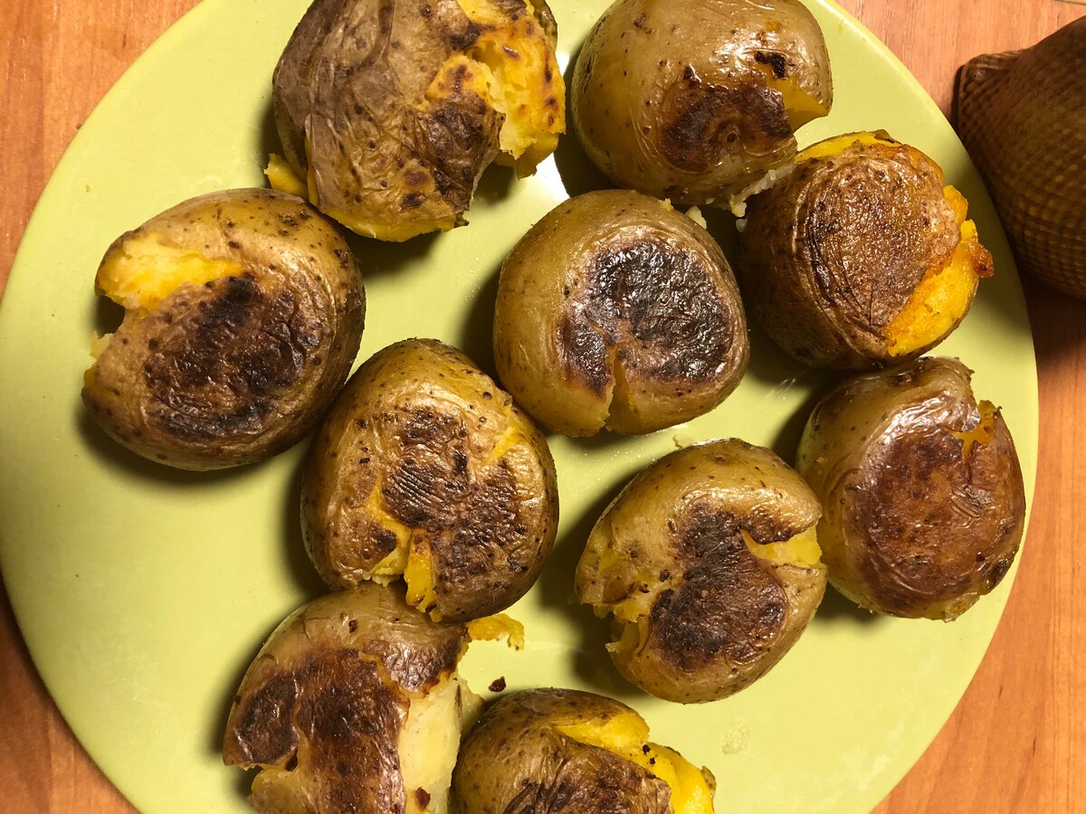 Готовый Картофель раздавить и обжарить на сливочном масле.
