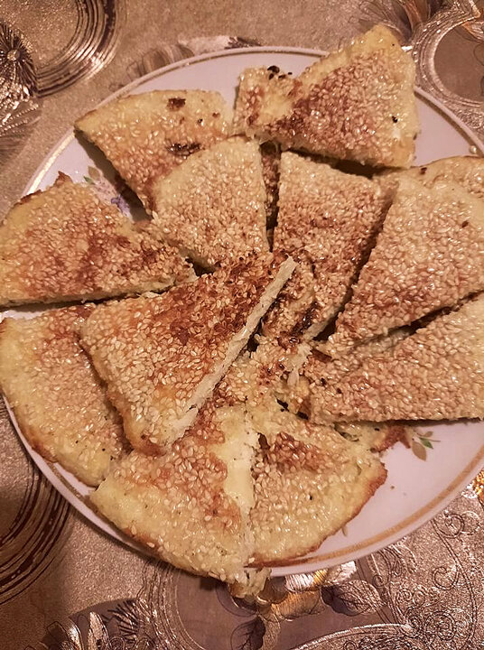 Затем получившуюся смесь выкладываем на разогретую сковороду,и посыпаем кунжутом,