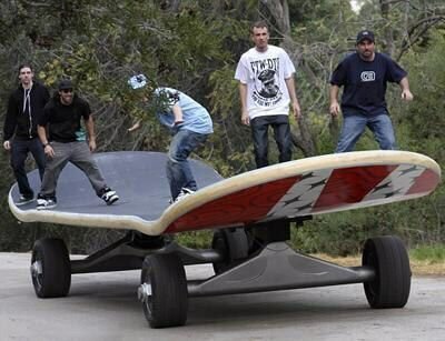 Этот необычный вид транспорта смастерили завсегдатаи Калифорнийского скейт-парка. Гигантская доскадостигает 1,1 м в высоту, 2,642 м в ширину и 11,15 м в высоту.