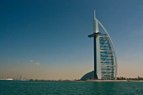 Архитектором отеля "Парус" в Дубае был британец Том Райт. Именно он нарисовал и спроектировал этот отель. Здание необычной архитектуры - в виде мачты с парусом. Подсвечиваемые ночью тефлоновые полотна, из которых сделан парус, придают особую красоту отелю. Отель возведен посреди моря в 280 м от берега на искусственном острове.