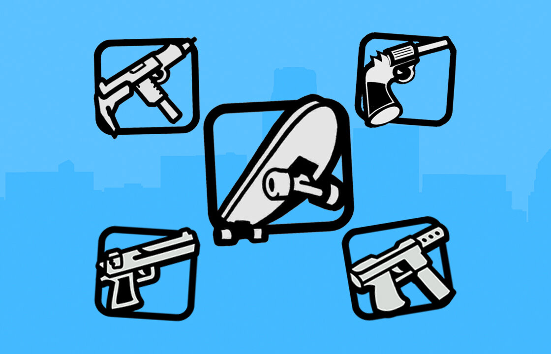 Сан Андреас бесспорно имеет невероятно широкий выбор транспортных средств. Комбайны, велосипеды, поезда, квадроцикл и даже картинг. Удивительно, что при всём многообразии средств передвижения, разработчики ГТА обошли стороной скейтборд. И многие возможно захотят возразить: а причём тут скейт, если ролик об оружиях?