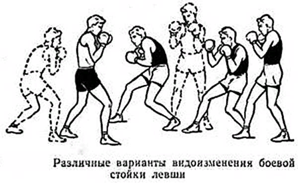 стойки. Смену стойки, когда меняется передняя нога и сильнейшая рука и т.п., например при переходе из правосторонней в левостороннюю, и наоборот лучше делать во время перерыва или остановки боя,для того чтобы мозг вместе со стойкой смог перестроится,так как в разных стойках голова работает по разному.