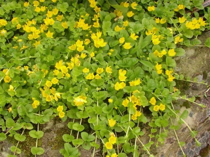 Вербейник монетчатый используют как ампельное или почвопокровное растение. Название монетчатый связоно с интересной формой листьев, которые напоминают круглую монету. Цвету желтые, мелкие. Во время цветения растение выглядит как яркий, желтый ковер.