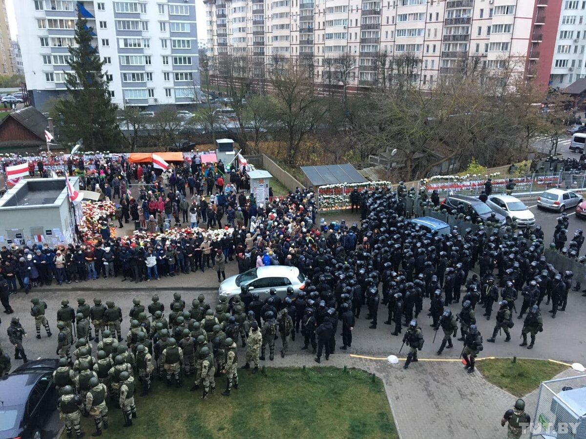 Мы в гостях в какой-то из квартир на Площади Перемен. Нас 15 незнакомцев. За окном слышны звуки бьющегося стекла, уничтожают мемориал памяти Романа. Мы сидим тихо, не выглядываем, потому что в окна светят фонарями, высматривают тени, ищут, где есть люди. Сама Площадь в оцеплении.