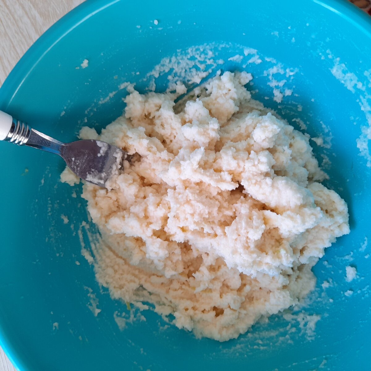 2) Сыр натираем на мелкой терке, цедру лимона тоже натираем и вмешиваем в тесто. Даем постоять 30 минут.