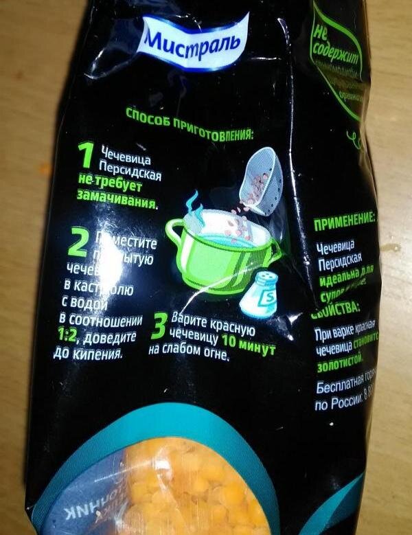 На упаковке также есть рекомендация использовать эту чечевицу в супах.