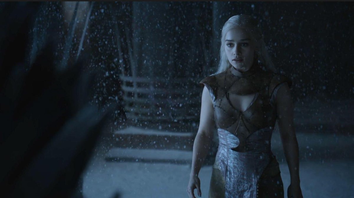 Обратите внимание что одежда у неё не соответствует Вестеросу, она одета в наряд что подарил ей Ксаро Ксоан Даксос. А давайте теперь сравним этот материал с концовкой.