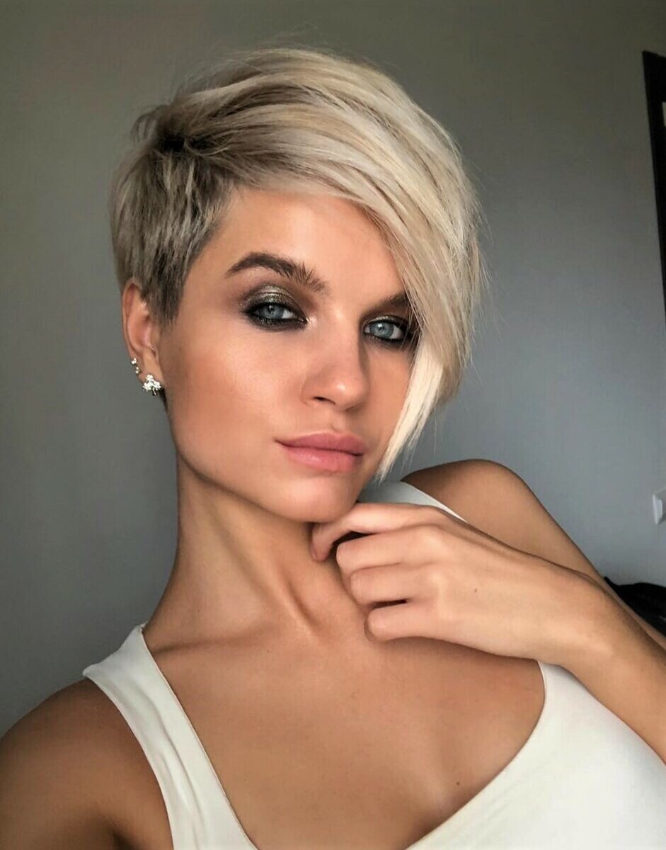 Игривая, стильная, удобная и довольно-таки дерзкая стрижка. Она может быть очень короткой по бокам и на затылке и иметь длинную челку или быть более удлиненной. Если это дело приправить макияжем, то получиться просто бомба.