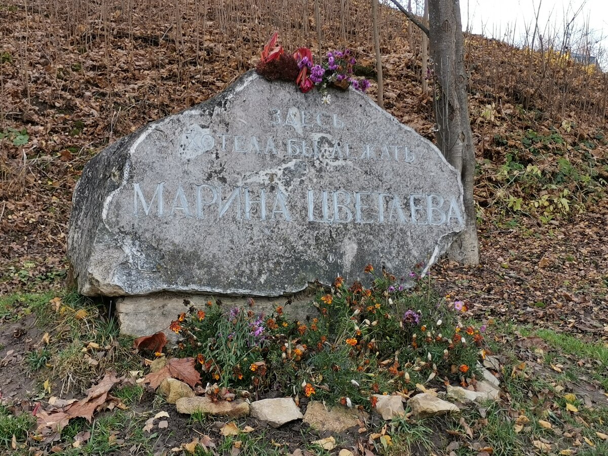 Первый камень на этом месте был установлен в 1962 году поклонником Цветаевой, через 20 лет после смерти поэтессы. Однако спустя неделю он был демонтирован - кенотаф мог стать препятствием для выхода сборника ее стихотворений. В 1988 камень появился вновь, правда в другом исполнении.