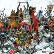5 апреля 1242 г. на Чудском озере у Вороньего камня состоялась битва русской дружины под предводительством князя Александра Невского с рыцарями Тевтонского ордена. Это сражение вошло в историю под названием «Ледовое побоище».