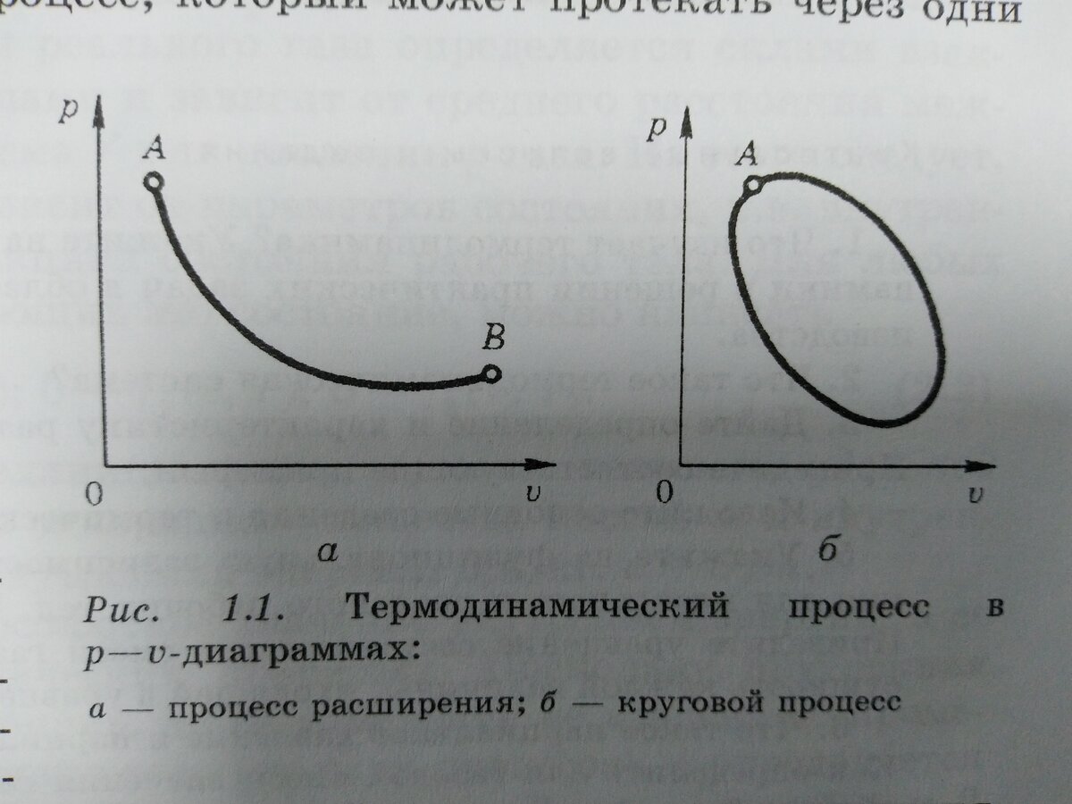 Термодинамический процесс, который может протекать через одни и те же равновесные состояния как в прямом А-В, так и в обратном В-А направлениях, называется обратимым: