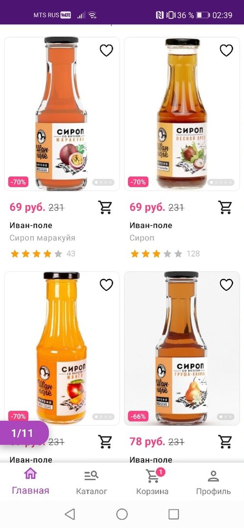 Кстати, что заметила - цена на одни и те же продукты меняется каждый день. Я составила корзину, планировала заказать три сиропа, но после 12 ночи их цена изменилась и они стали намного дороже. Зато другие товары, которые мне понравились и лежали в "избранном" стали дешевле. Я поняла только то, что, если цена полностью устраивает, лучше сразу покупать, иначе можно упустить момент. И мне понадобилось три раза упустить нужный продукт, чтобы это понять.