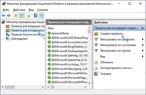 3. В левом ряду выберите "Правила для исходящего подключения".