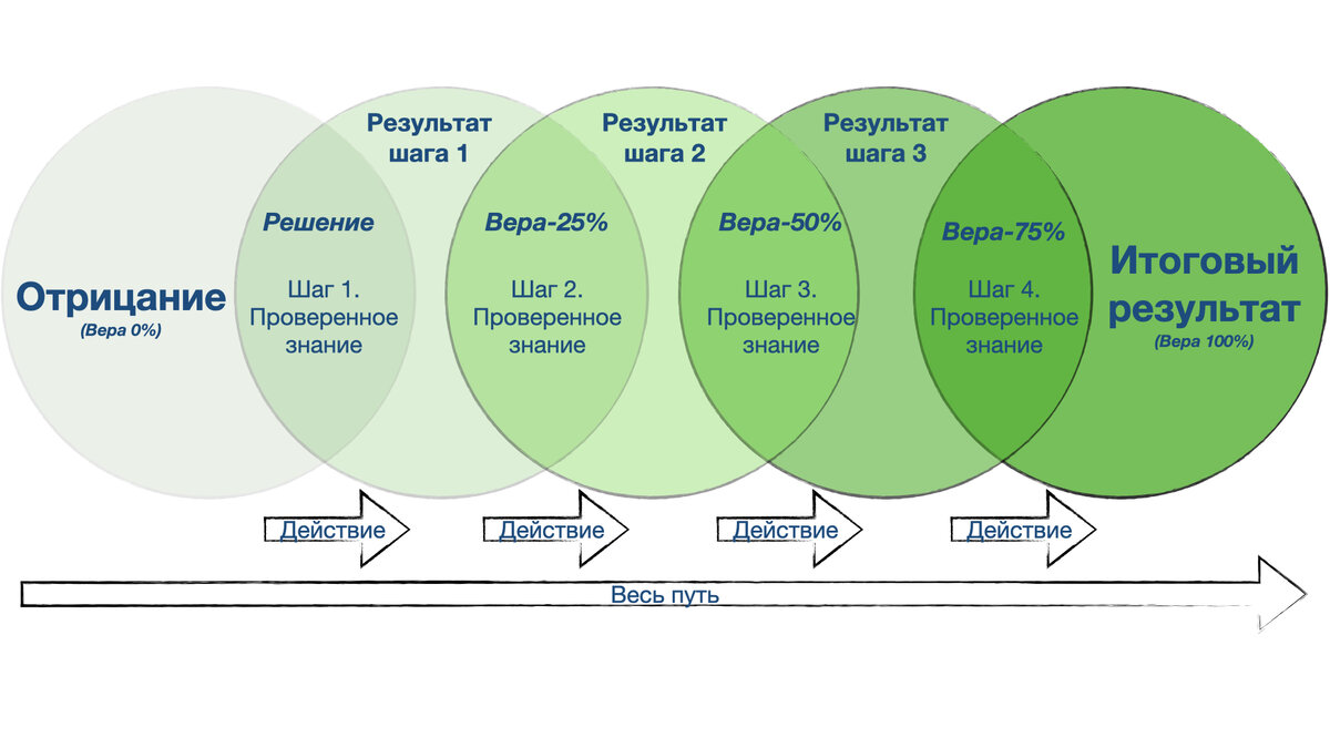 - поговорить с другими, кто также пошел по этому пути. Подменить веру во что-то, верой человеку, который демонстрирует результат;