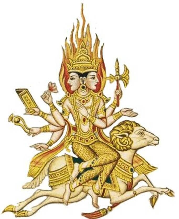 Агни является эманацией Шивы (янского принципа бытия) и покровителем стихии огня.
