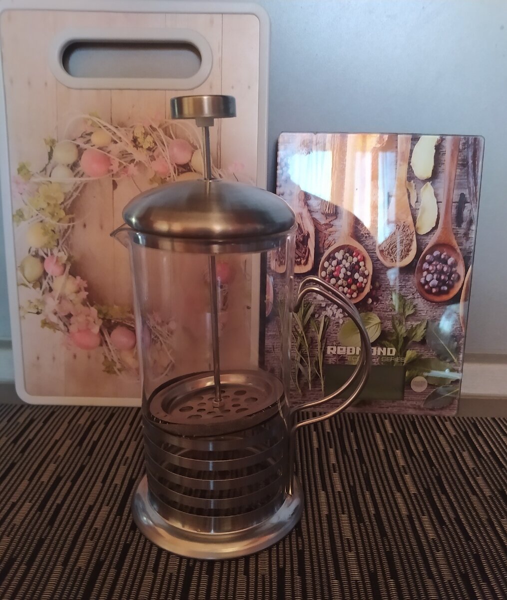 Первая покупка это френч-пресс. Старый я недавно разбила. Этот достаточно большой, стеклянный. Вообще качество хорошее. В других магазинах видела такой от 439 рублей.