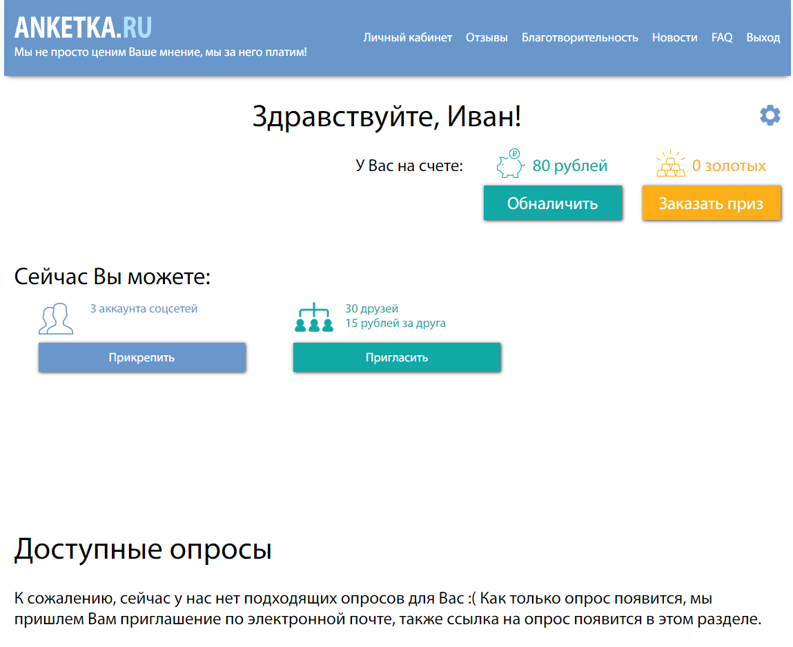все что мне удалась это заработать 80 рублей за то что заполнил профиль