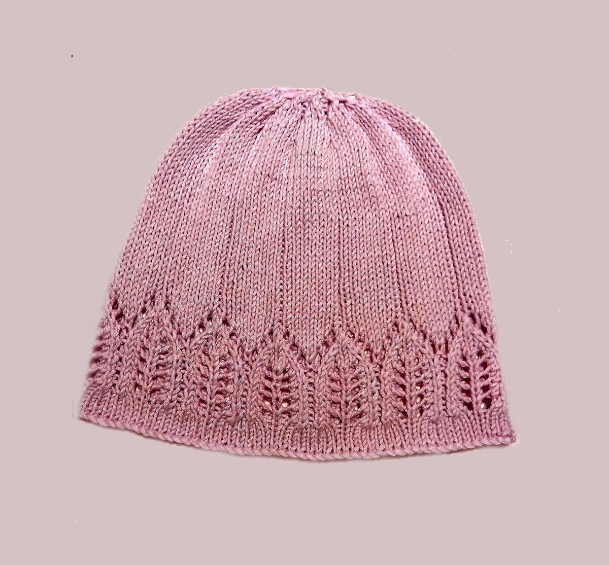Пора задуматься о прохладных осенних днях. Симпатичная шапочка из хлопковой пряжи с ажурным узором из листьев пригодиться в такую пору. Ее можно связать из любой пряжи, подходящей по плотности. Размер: 54-56 Вам потребуется: пряжа (100% хлопок; 100 г/ 245 м) - 80 г; спицы №3,5 и 4. УЗОРЫ Лицевая гладь: лиц. ряд - все лицевые, изн.ряды - все изнаночные. Ажурный узор из листьев: вязать по схеме. Число петель кратно 8 п. Плотность вязания: 10 х 10 см = 20 п. х 26 р. На спицы №3,5 набрать 107 п. и связать 2 см лицевой гладью. Продолжить вязание спицами №4 узором из листьев по схеме (18 р.), затем повторять 17-й и 18-й р. На высоте 17 см от начала вязки выполнить убавления следующим образом: 1-й ряд: 1 кром., 2 лиц., 2 п. вместе лиц. с наклоном влево, * 1 изн., 2 п. вместе лиц., 3 лиц., 2 п. вместе лиц. с наклоном влево *, повторить от * до * еще 11 раз и закончить 1 изн., 2 п. вместе лиц. с наклоном влево, 2 лиц. и 1 кром. = 81 п.; 2, 3 и 4-й ряды: вязать по рисунку; 5-й ряд: кром., 1 ли